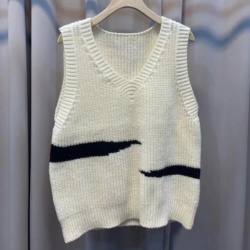 【纭竹服饰】V领麻花毛衣女宽松短款