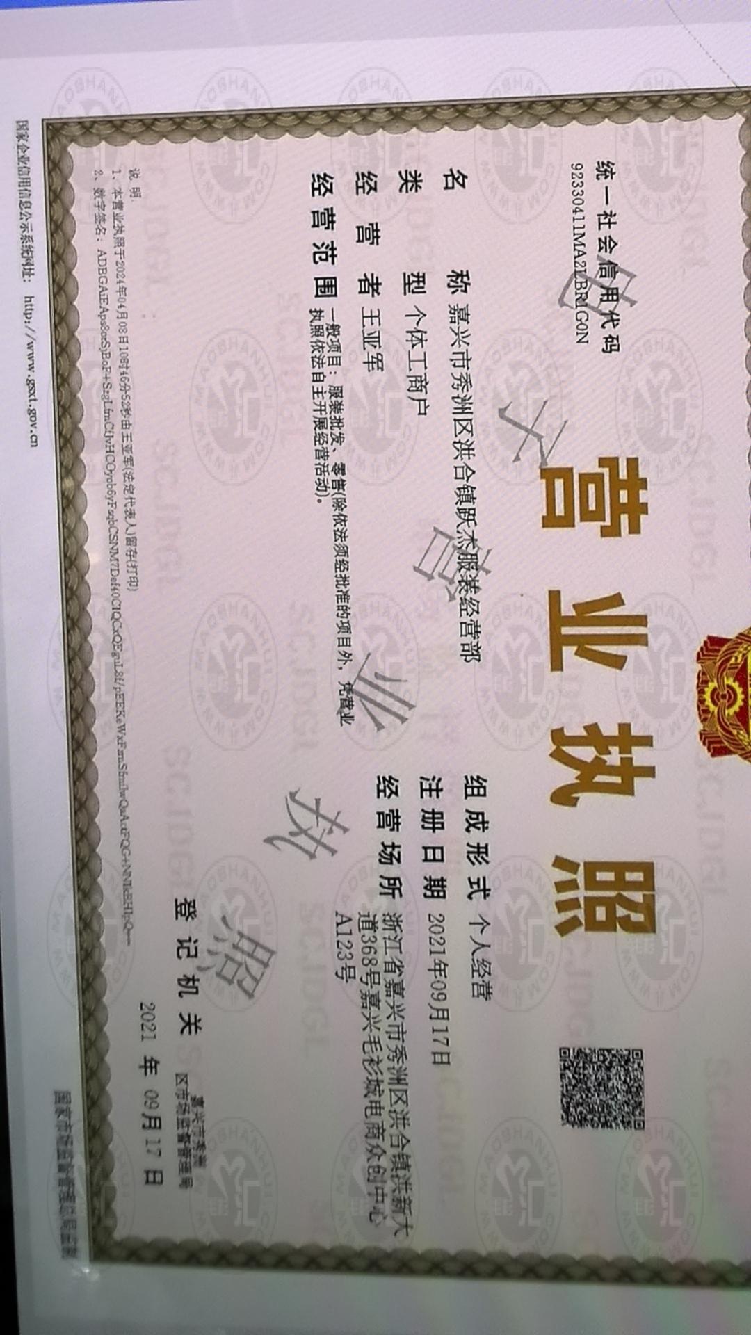 罗氏女装营业执照