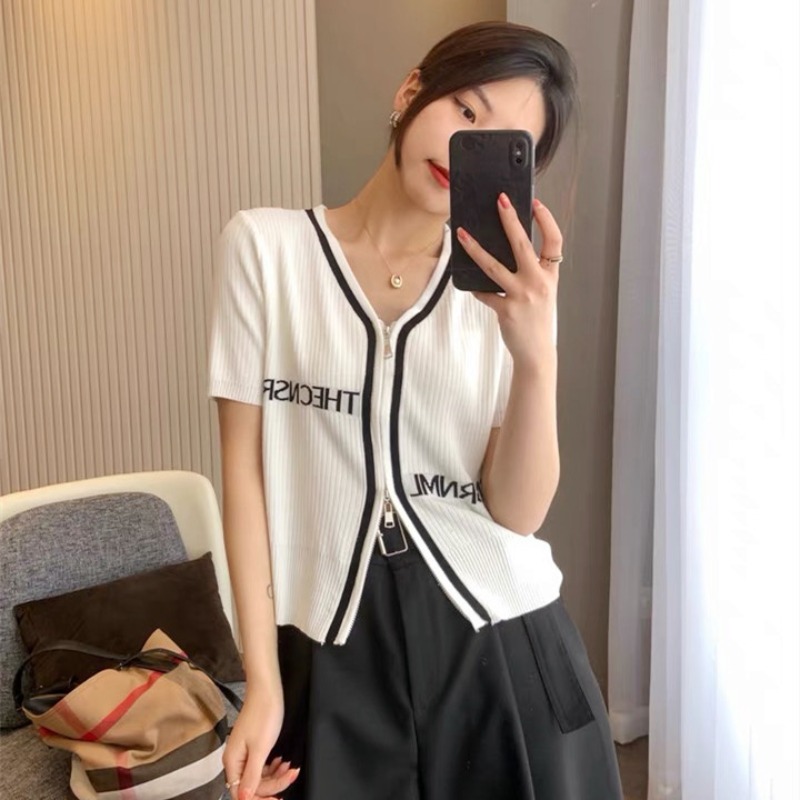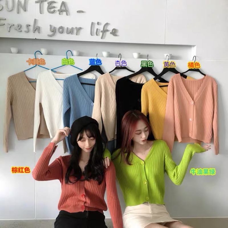 【昊洋】早秋新款短款小众针织开衫慵懒风上衣