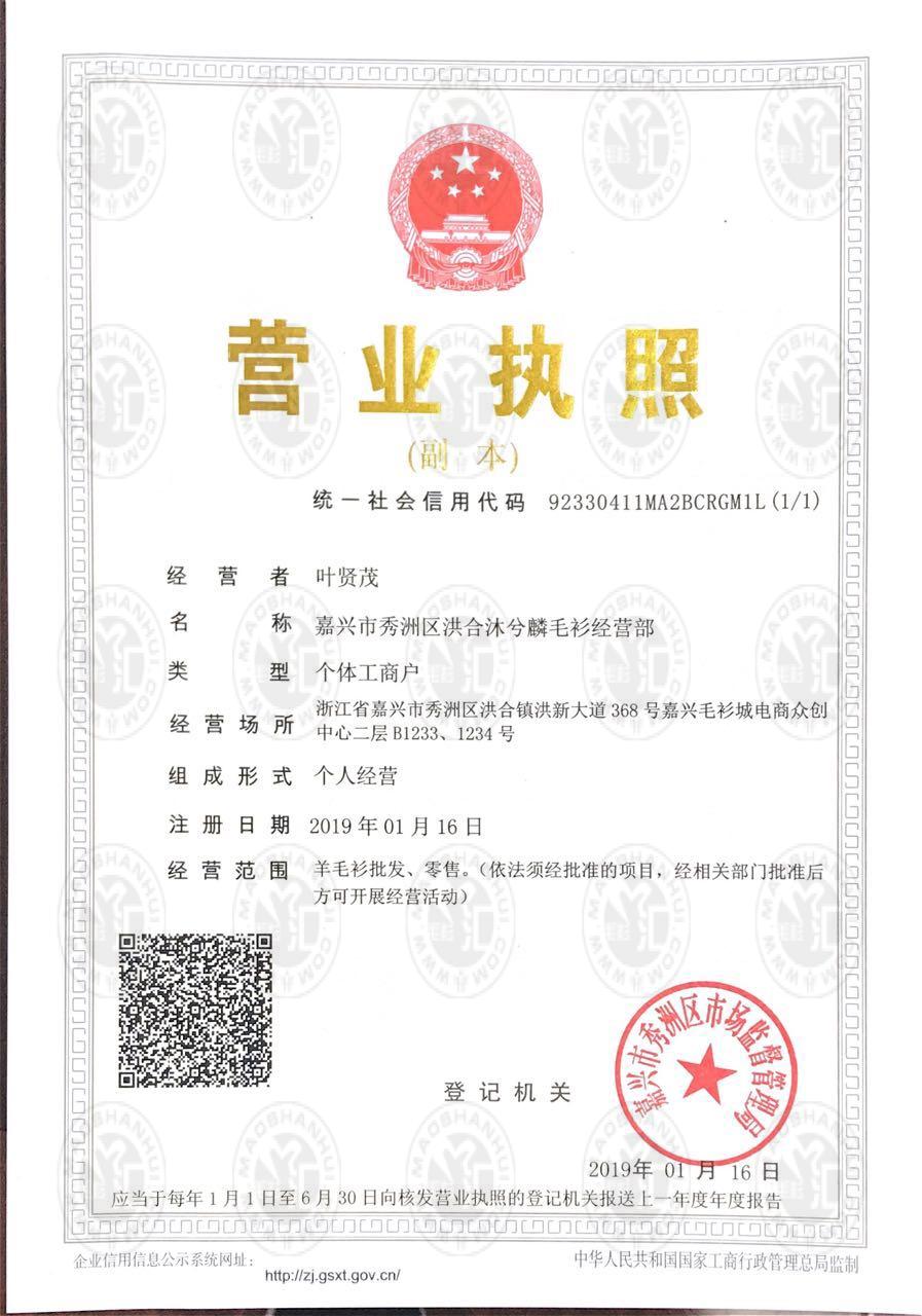 沐兮服饰营业执照