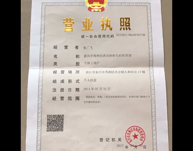小飞家工厂店营业执照